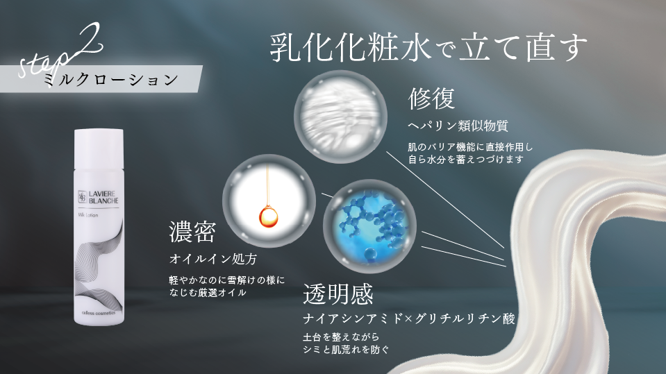 安定したミルク状の化粧水は処方組みが難しいといわれておりますが、