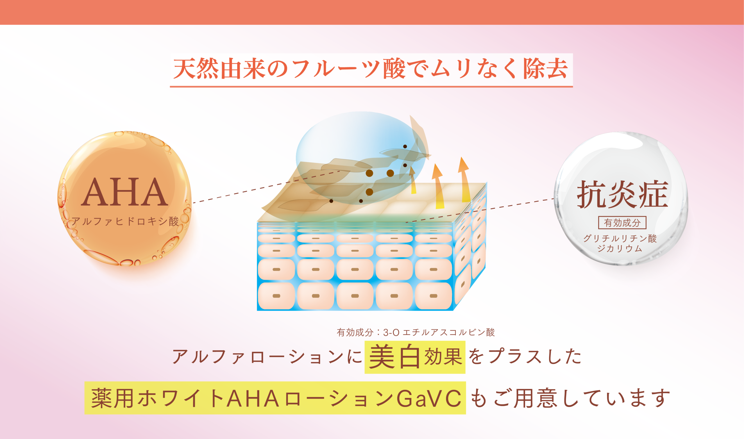 美白の効果もプラスした薬用ホワイトAHAローションGaVCの処方もご用意しています。